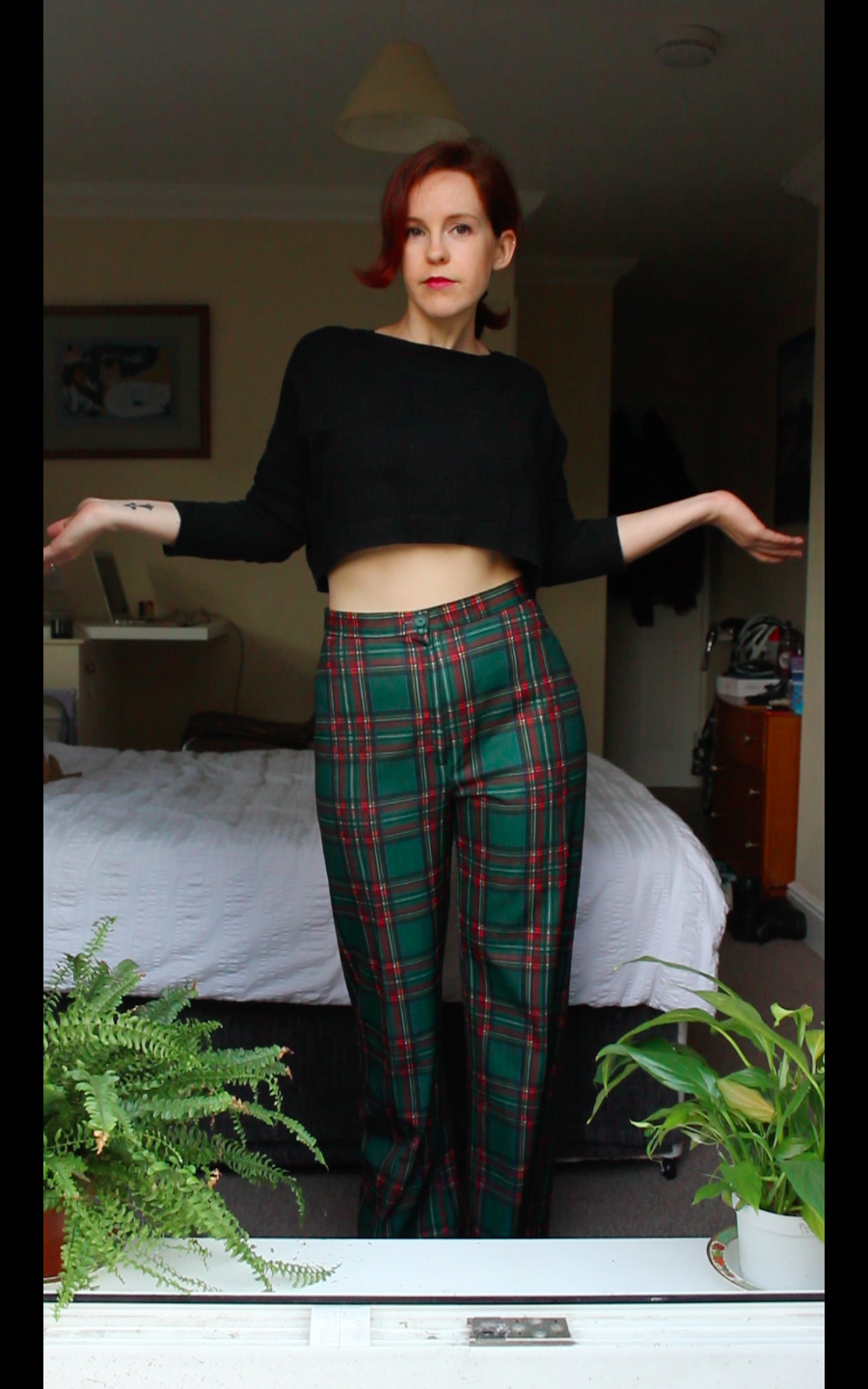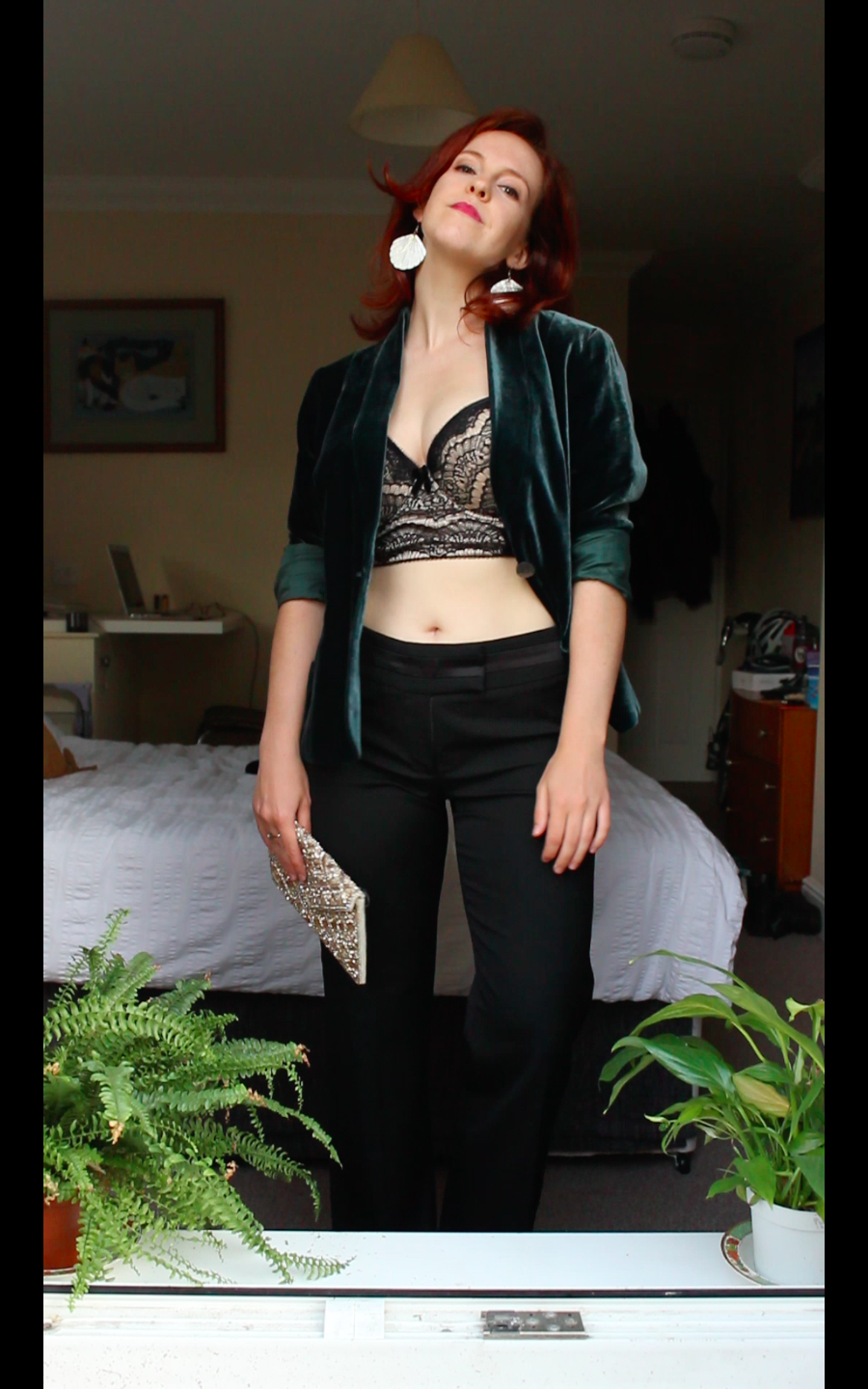 Tuxedo trousers (charity shop £10) and velvet blazer (charity shop £8)